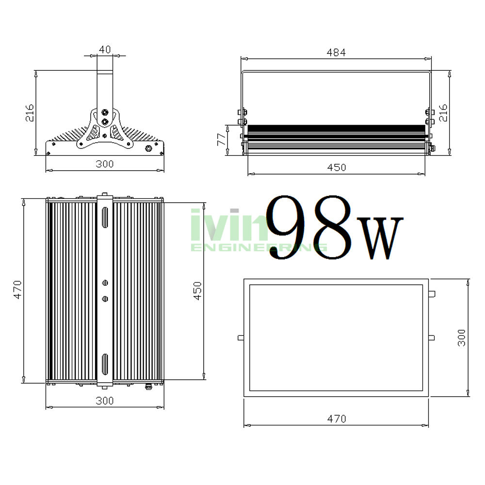 | Lumens LEDs 98*1W | CREE 35*35 LEDs 98*2W | 470X300X75mm | 450mm | 7.7kg |