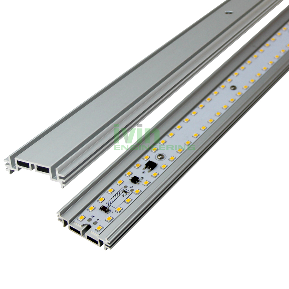 Sliding profile. Used to hold LED modules. 2 Sided: Side A: 24mm width module. Side B: For Osram LED module PLVZ1-LIN-1300-8XX-280-DC Zhaga standard LED module. Silver anodize finish.